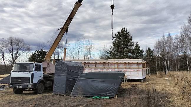 Дома серии HYTTE производятся в цехе и собираются на объекте за несколько дней. Этот комплект был собран специально для доставки в Рязанскую область.