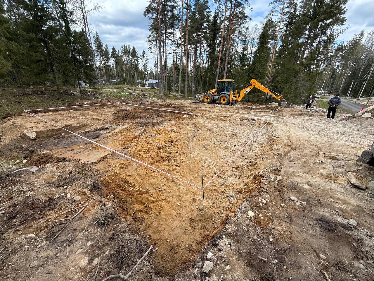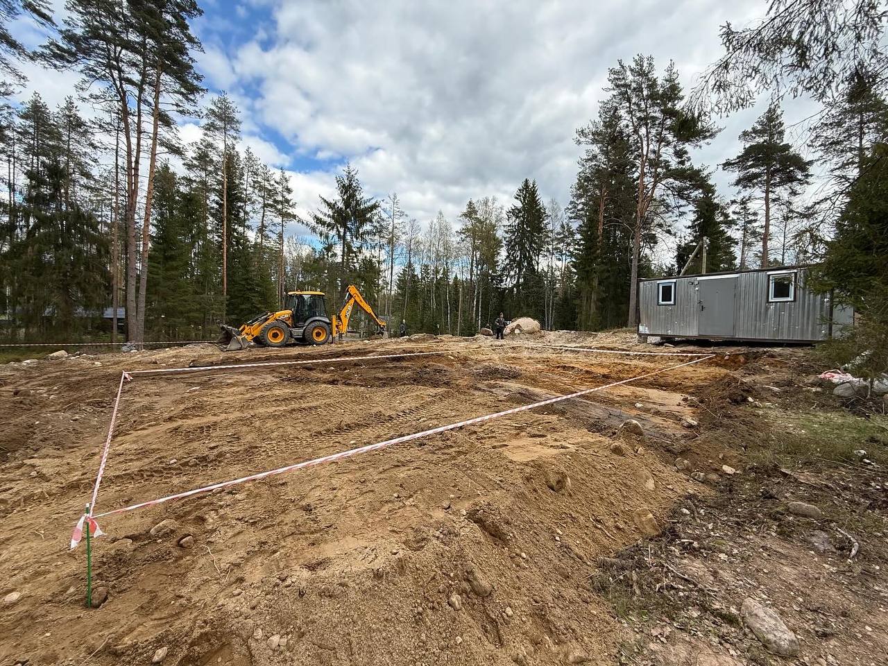 На старте подготовка строительной площадки и организация въезда и площадки под кран.